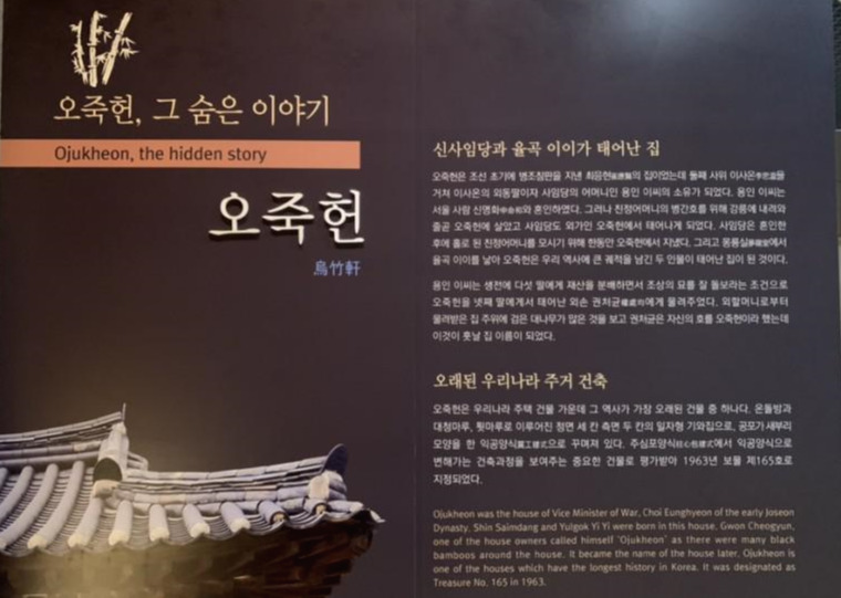 오죽헌은 원래 조선 초기 강릉의 선비 최치운이 지은 것으로 전한다. 그의 아들 최응현에서 외손에게로 상속되어 오다가 1975년 정화 사업 때 강릉시로 이관되었다. 경내에 율곡 이이의 사당인 문성사와 율곡 기념과, 강릉시립박물관과 율곡 인성교육관 등을 지으면 서현재의 모습을 갖추었다고 한다. 율곡 선생이 태어난 ‘오죽헌(烏竹軒)’ 방 옆에는 대나무 숲인데, 줄기의 빛깔이 까마귀처럼 검은색이어서 오죽이라 부르다가 그것이 그대로 집 이름이 되었다고 한다. 강릉시립박물관은 강릉의 역사를 고스란히 담아놓은 유물과 민속자료, 옛날 물건 등이 당시의 생활모습이 파노라마처럼 잘 표현되어 있다.