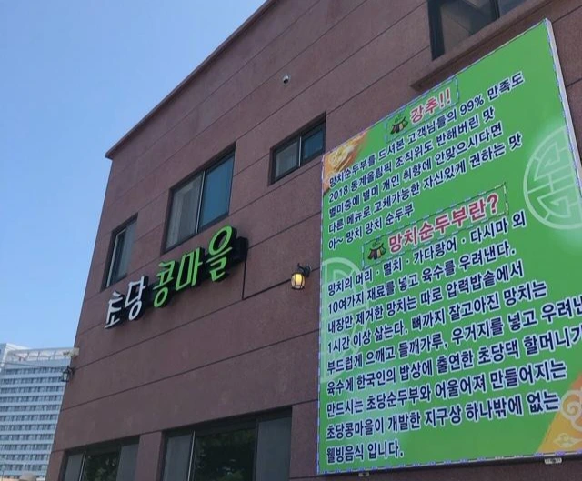 번호표를 받고 기다린 지 30분이 지난 후에야 종업원의 호명에 따라 겨우 식당 안으로 들어갈 수 있었다. 우리는 메뉴판을 보며 짬뽕 순두부 전골과 두부조림, 순두부백반 4인분, 모두부를 주문했다. 여섯 가지 밑반찬과 함께 도착한 다양한 순두부의 맛을 즐기며 배를 채웠다. 특히 짬뽕 순두부와 몽글몽글 하얀 꽃이 핀 듯한 순두부, 두툼한 모두부는 고소하고 부드러움으로 또 다른 미각을 전해주며 입안을 즐겁게 해 주었다. 바다 향이 가득한 초당마을의 순두부는 수백 년 세월을 품은 맛과 향을 간직하는데 온 정성을 다한다는 장인의 손 맛이 두부 속에 스며들어 있는 것 같았다. 더구나 초당 두부는 천일염으로 만든 간수 대신 동해의 깨끗한 바닷물로 간을 맞춰서인지 두부 맛이 평소 집에서 먹던 두부 맛과 사뭇 달랐다.