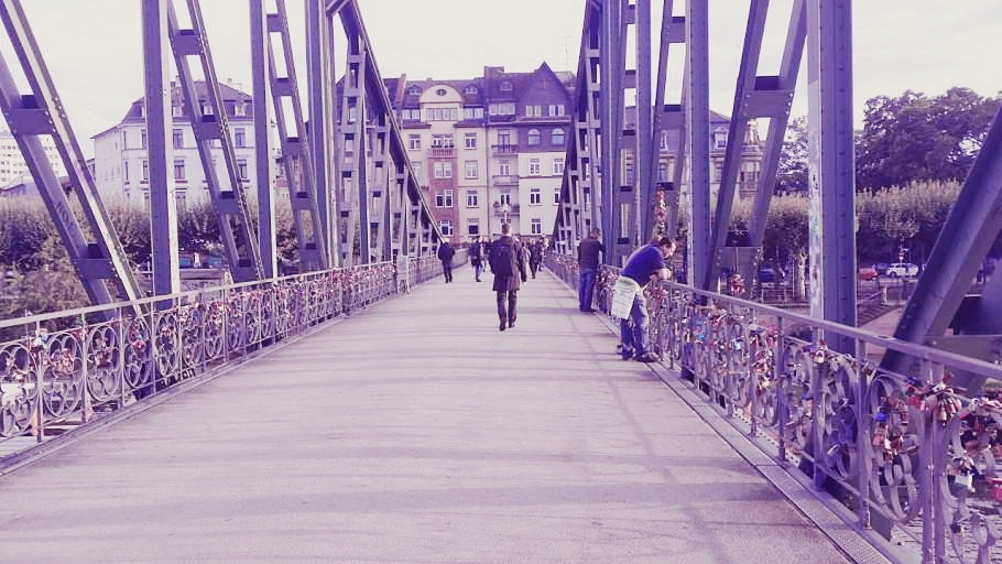 아이 젤너 다리는 철재 빔으로 만든 다리로 라인강의 지류인 마인강을 지나는 다리 중 유일하게 보행자 전용 다리다. 다리 난간엔 정말 많은 자물쇠가 걸려 있었다. 세계 유명 여행지의 다리나 난간에서 사랑의 열쇠를 찾는 것은 이제는 그리 어렵지 않다. 다리에 빼곡히 채워진 사랑의 열쇠를 보며, 이곳이 데이트 장소로도 손색없는 곳임이 느껴졌다.