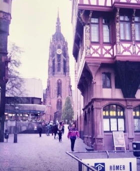 뢰머 타운홀은 로마 시대에 지어져 황제가 즉위식을 한 후 연회를 베풀던 곳이며, 2차 대전 때 파괴되었다가 복원되어 시청으로 사용하던 건물이라고 했다. 가운데 보이는 테라스에는 유명인사들이 올라가 연설을 했다고 하는데 현대에 들어 그곳에 올라가 본 사람이 몇 안 되는 가운데 차범근과 차두리 부자가 올라가 화제가 되기도 했던 곳이다. 독일 사람들은 이곳 프랑크푸르트를 폴란드 국경에 있는 작은 도시 프랑크푸르트와 구별하기 위해 '마인강변의 프랑크푸르트'라고 불렀다.