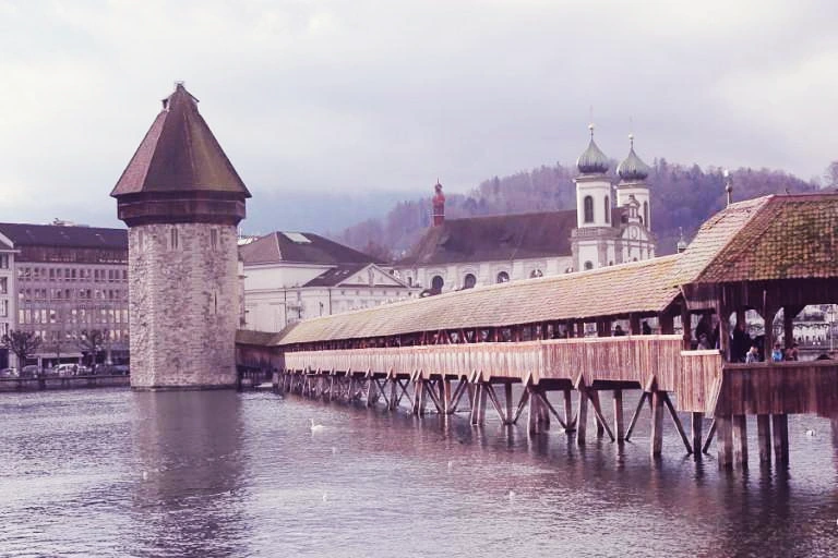 스위스의 대표적 관광명소는 역시 '카펠교'였다. 중세 시대에 건축되었다는 카펠교는 유럽에서 가장 오래된 나무다리로 호수 위에 낭만적으로 가로 놓여 있었다. 도시 방어를 위해 14세기에 건설된 204m 다리로 다리의 난간이 서쪽은 낮고, 동쪽은 높은 것도 방어개념이라고 한다. 다리 위에 그려진 다양한 그림은 루체른의 역사와 수호성인(守護聖人)들이었다. 다리 중간에 우뚝 선 43m 팔각 탑은 당시 감옥 용도로 사용되었으며, 감시탑 역할도 겸했다고 했다. 특이한 것은 다리 위에 지붕이 있다는 것이다. 세계 어디를 가도 다리 위에 지붕이 있는 다리는 아직 보지 못했다. 지붕에는 루체른을 지킨 성인들의 그림이 있었지만 1993년 화제로 소실되었다고 한다. 지금은 판화 25개 정도 복구되어있는 그림을 볼 수 있었다.