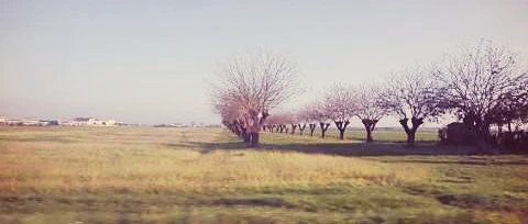 밀밭도 보이고 포도밭도 보이고 허름한 농가들이 한국 농촌과 흡사했다. 구릉을 일구어 밭을 만들고 밭에다 집을 짓고 주위에 나무를 심어 거목들이 운치 있게 가옥들을 감싸고 있다. 서쪽으로 기우는 해와 뭉게구름, 황금 밀밭과 푸른 채소밭과 과수원이 함께 조화를 이루며 어린 시절 시골에서 보았던 한 폭의 풍경화와 같았다. 버스는 구릉과 평야 사이의 고속도로를 질주하고 있다. 구릉에는 포도 복숭아 올리브 농장이고 평야는 온통 밀밭뿐이었다.