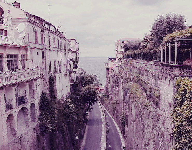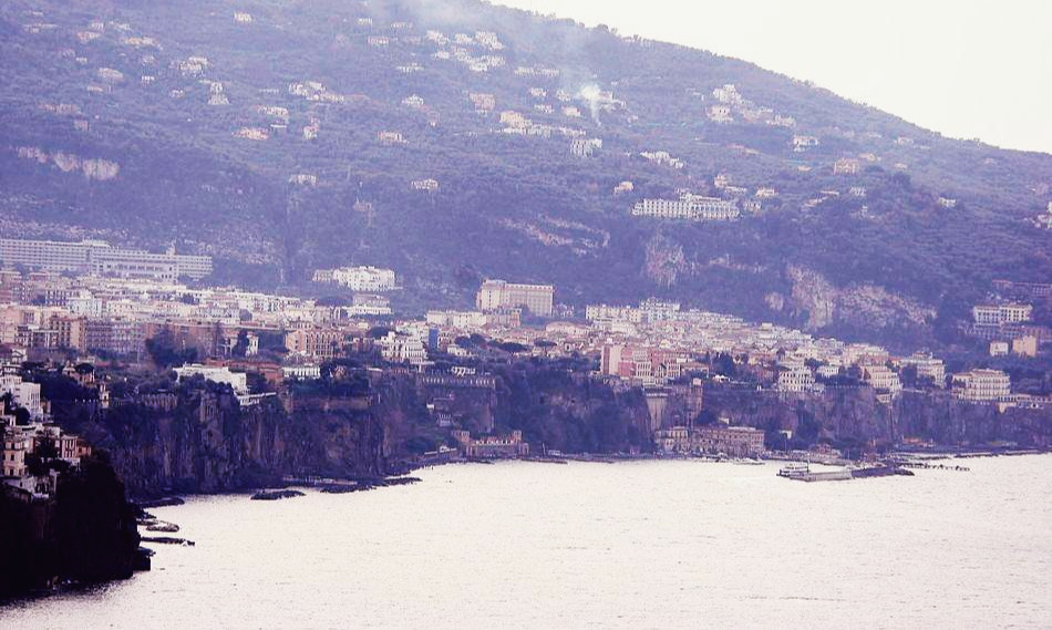 소렌토는 지대가 높아서 주변 경치가 한눈에 잘 들어왔다. 오른쪽으로 나폴리만이 보이고 그 너머 산과 육지가 보이며, 반대쪽으로는 소렌토 반도의 산자락에 듬성듬성 집들이 늘어서 있는 모습이 정말 아름답고 멋진 풍경이었다. 해안 절벽에 세워진 고급 호텔, 별장, 집들이 참으로 아슬아슬해 보였다. 특히 쏘렌토에서 만나는 한가하고 여유로운 파스텔 톤의 건물들과 코발트블루의 지중해 바다가 어우러져 있는 모습을 보며 지중해의 그림 같은 도시라는 생각이 들었다.