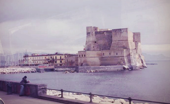 산타루치아 해안에서 바라보는 델로보 성은 나폴리에 남아 있는 성 가운데 가장 오랜 역사를 지니고 있는 나폴리의 상징물로 4개의 원통형 탑이 있는 성벽으로 둘러싸여 있으며, 13세기에 나폴리를 정복한 프랑스의 앙주 왕가의 성이었다고 한다. 해안에서 본 나폴리만과 베수비오 산의 풍광은 또 하나의 수채화를 보는 듯한 착각을 일으킬 정도로 아름답게 다가왔다.