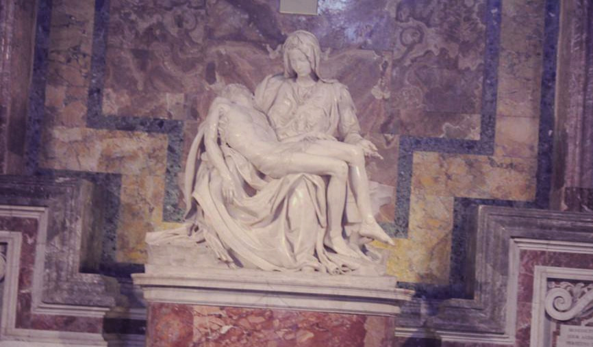 베드로 대성당에서 가장 유명한 것 중 하나는 성당 안의 오른쪽에 있는 '피에타'였다. 미켈란젤로가 25세 때 완성한 작품으로 인류의 구원을 위해 십자가에서 숨을 거둔 예수 그리스도를 안고 있는 성모 마리아의 슬픔이 드리워진 모습을 표현한 작품이다. 대리석에 새겨진 생생하고 섬세한 조각의 아름다움이 부드럽고 은은하게 빛나