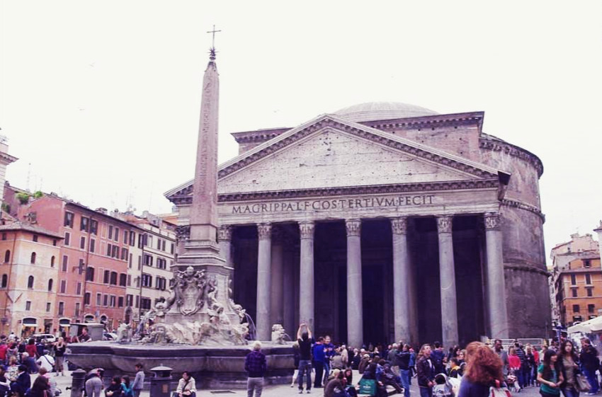 판테온 이란 그리스어로 "모든 신들의 신전"이란 뜻으로 아그리파가 기원전 31년 악티움 해전에서 안토니우스와 클레오파트라의 연합 해군을 격파한 것을 기념하기 위해 세웠다고 한다. 그 후 서기 80년 대화재로 소실되었던 것을 서기 125년 경 하드리아누스 황제에 의해 지금의 모습으로 재건되었다고 한다.