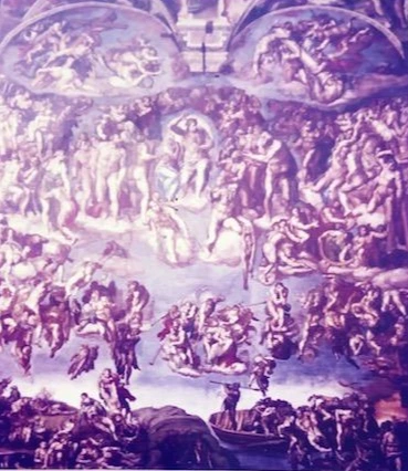 '최후의 심판'은 60대의 노장 미켈란젤로가 시스틴 대성당의 제단 뒤 전체의 벽에 7년 동안의 긴 세월에 걸쳐 그린 인류의 고귀한 문화유산이다. 이 세기의 걸작은 천국에 대한 인간의 갈망과 지옥의 공포를 생생하게 표현하고 있다. 인류의 종말을 상상시키는 ‘최후의 심판’은 20년 전에 그런 낙관적인 천장화의 ‘천지 창조’와는 전혀 다른 당시의 비극적인 시대상과 미켈란젤로의 비관적인 인생관을 여실히 반영하고 있으며, 교만한 인간들의 신앙으로의 경건하고 겸손한 복귀를 외치는 미켈란젤로 최후의 메시지였을 것이다. 미켈란젤로는 ‘최후의 심판’에 등장하는 인물들은 완전 나체로 그렸으나 거듭된 종교회의의 결과 미켈란젤로가 죽기 1년 전 덧칠로서 옷을 입히기로 결정하여 그의 제자에 의해 다시 꾸며졌다고 한다. 시스티나 예배당을 나오자 성 베드로 대성당 중앙 홀이 눈앞에 나타났다.