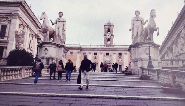 포로 로마노를 둘러본 뒤 계단을 올라가면 캄피돌리오 광장과 연결된다. 캄피톨리오 언덕은 로마의 일곱 언덕 중의 하나이다. 이 언덕은 고대 로마제국에서 가장 신성한 곳이었다. 16세기 미켈란젤로의 디장인으로 르네상스 양식의 건물이 들어서 지금에 모습에 이르고 있으며, 미켈란젤로는 놀라운 상상력으로 바로크 양식의 캄피돌리오 광장을 만들었다고 한다. 캄피톨리오 광장으로 오르기 위한 '코르 도니타 계단'은 미켈란젤로가 만든 착시효과로 유명한 곳이기도 했다. 보통 게단을 오르면 아래에서 올려다보면 윗부분이 좁아지는 사다리꼴로 보이는 데 이곳은 그다지 좁아 보이지 않았다. 이것은 위로 갈수록 계단의 폭을 넓게 만들었기 때문이라고 한다. 언덕을 올라가는 계단은 경사도가 상당히 완만했다. 이것은 과거 이곳이 정치의 중심지였고 그러다 보니 많은 외국 사절들이 교황을 알현하기 위해 바티칸이 아니라 이 캄피돌리오 언덕으로 올라왔으며, 따라서 말을 타고 올라갈 수 있는 완만한 경사가 필요했기 때문이었다고 한다.