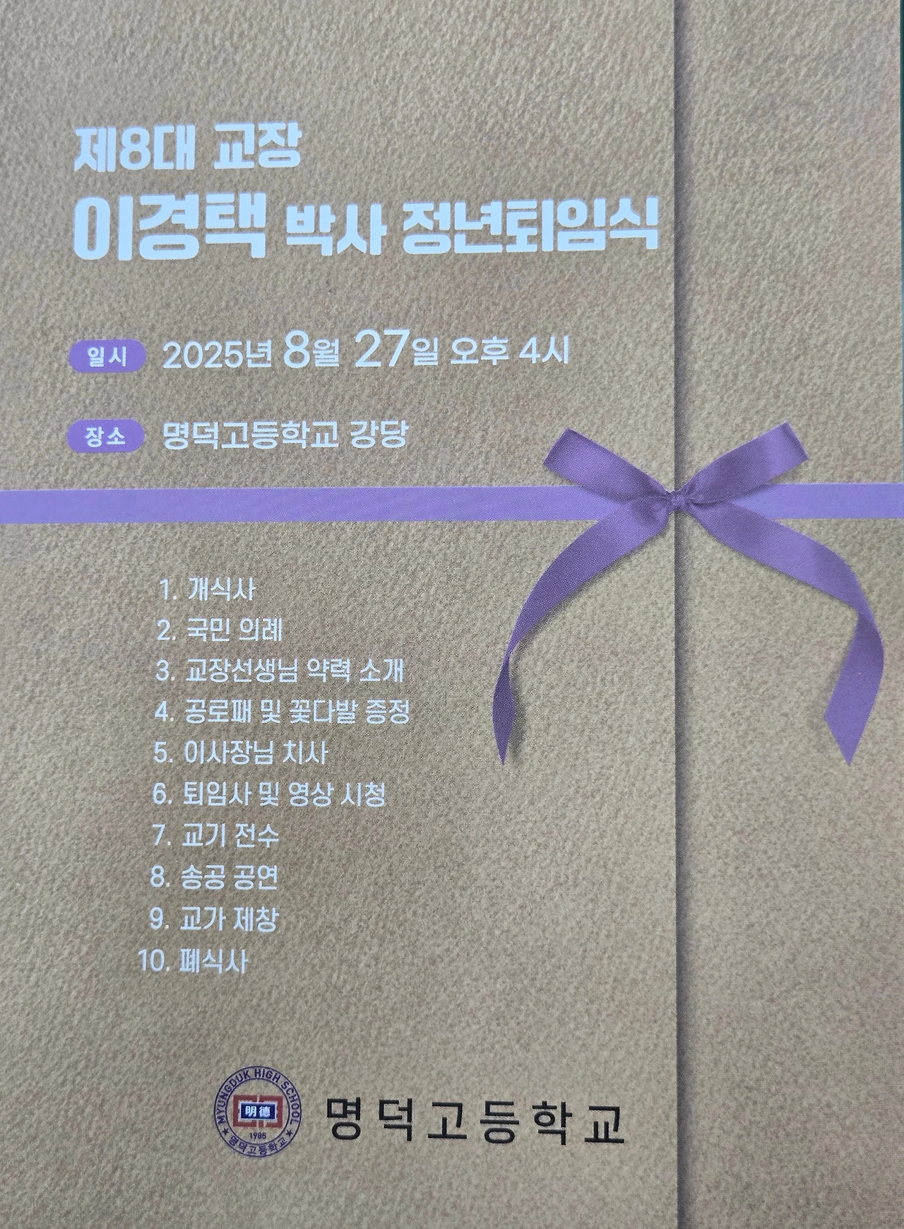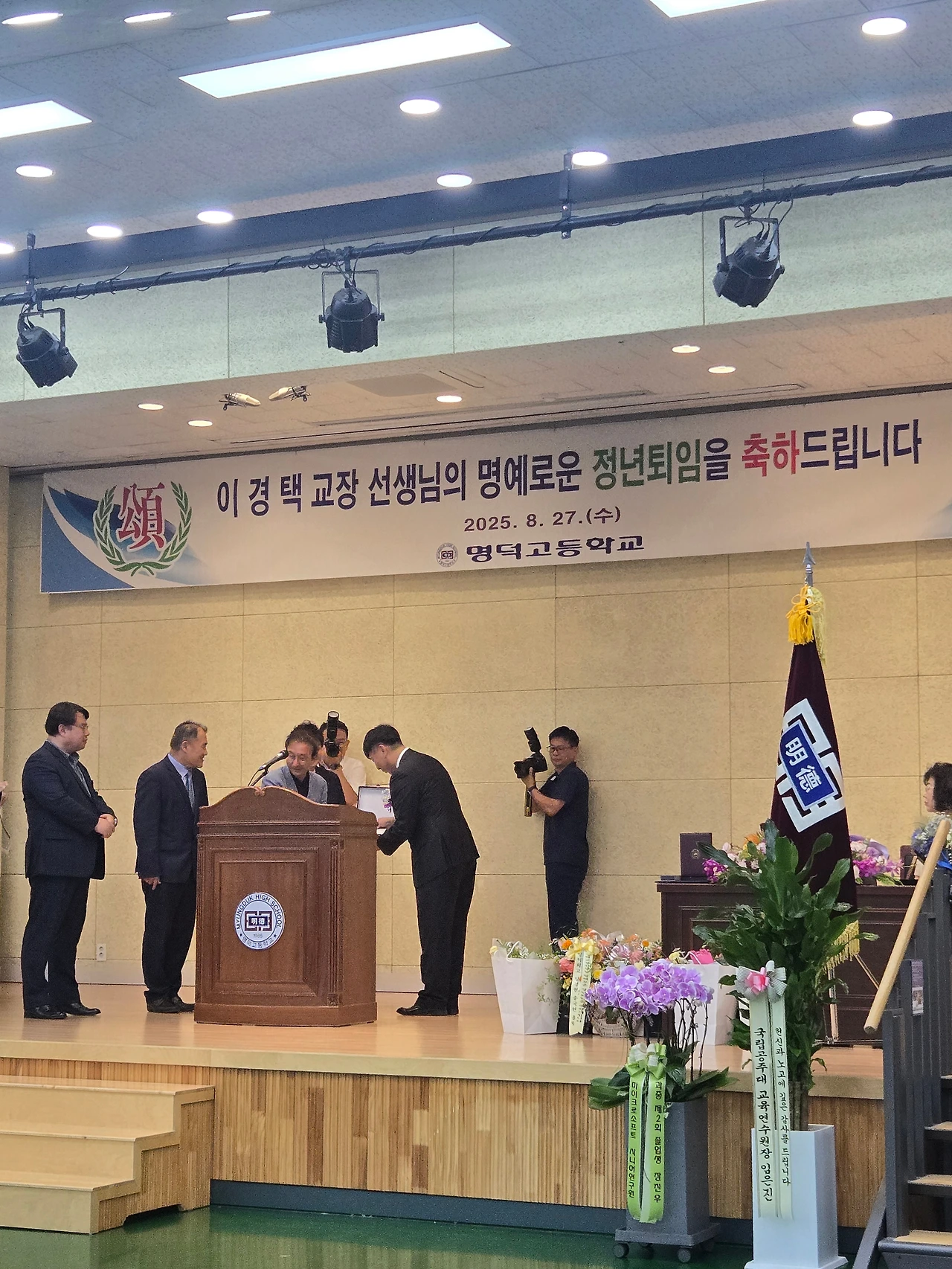 바로 경택 형님의 명덕고등학교 교장 정년 퇴임식 자리다.