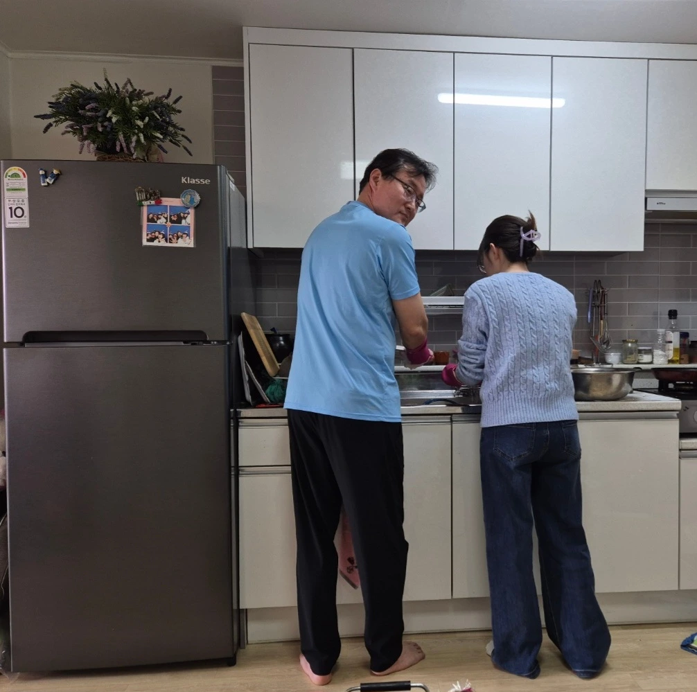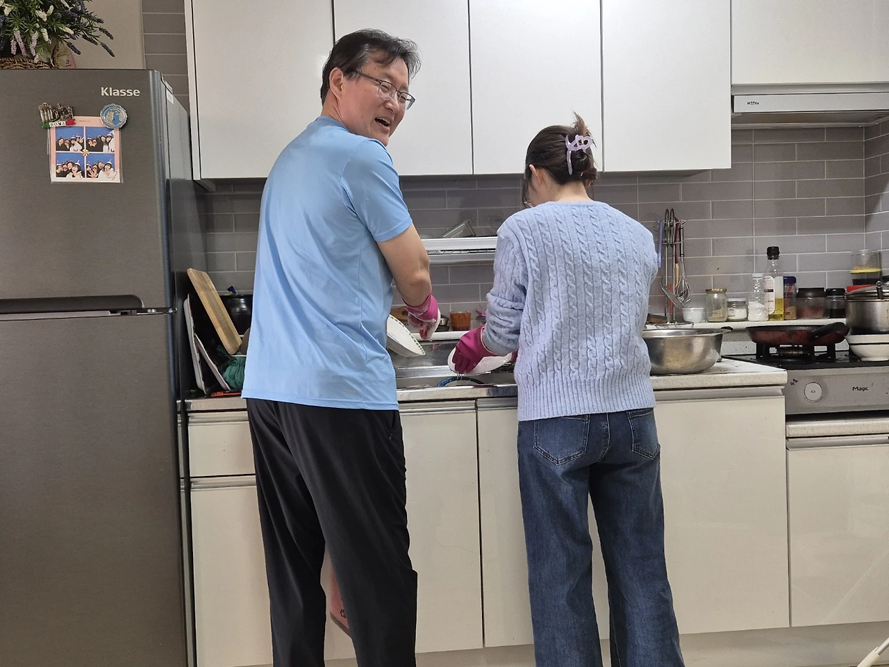 예감이 적중되어 설거지는 나와 막내딸이 하게 되었다.