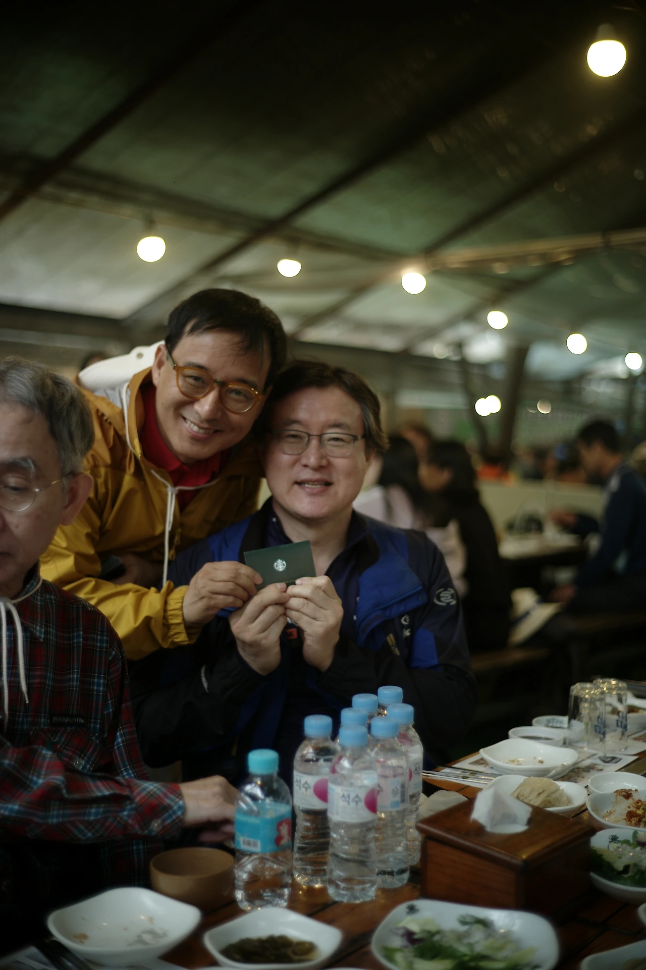 선물 받고 청계산 이수봉 정상정복 했다고 커피쿠폰도 상품으로 받고 오리고기도 배부르게 먹었습니다.