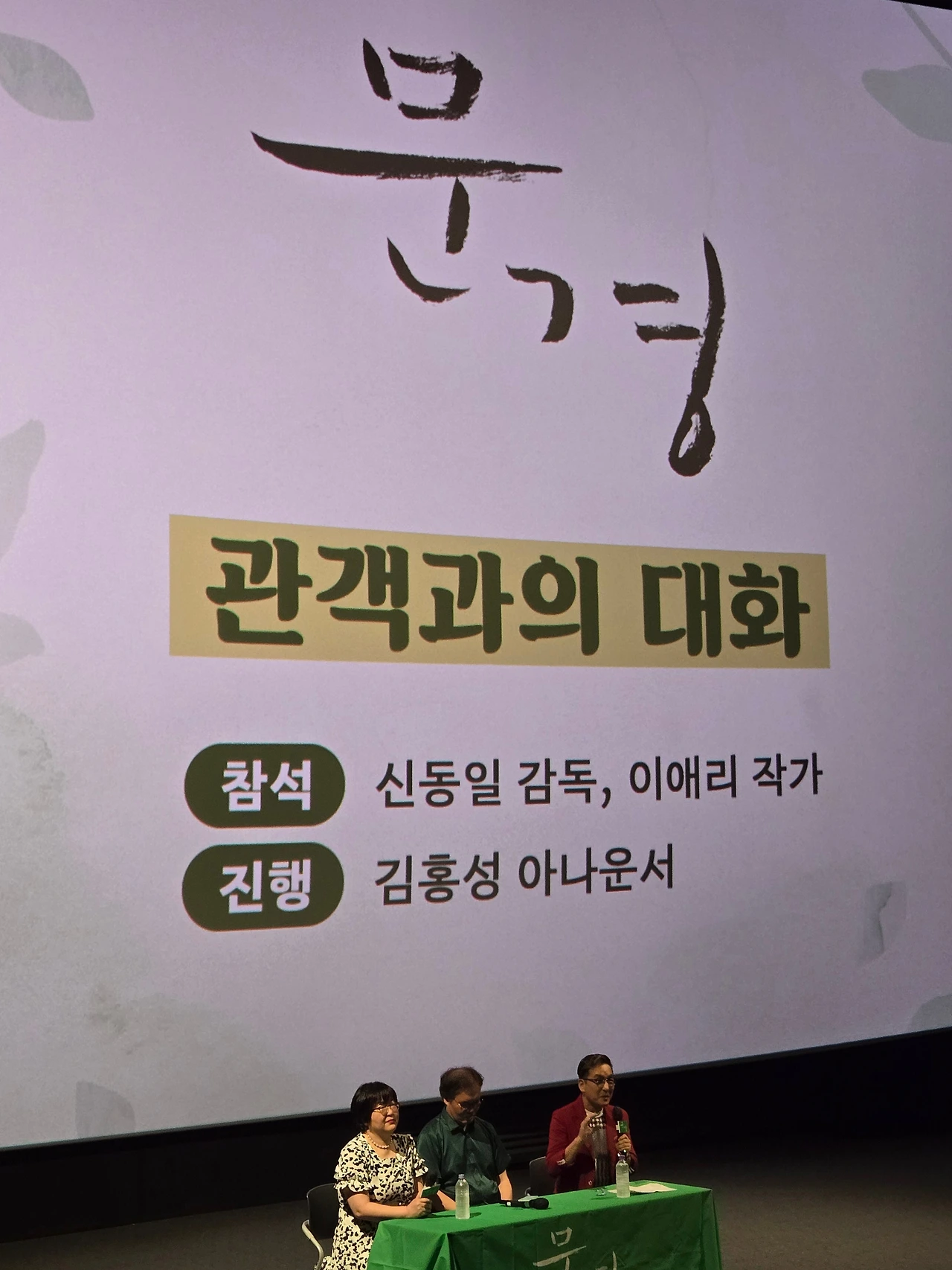 러닝타임 111분, 그리고 배우들과 감독과 작가와 함께 한 관객과의 대화 1시간 동안 재미있고 감동 있고 행복하고 감사했다. KBS 김홍성 아나운서가 사회를 봤다. 그의 맑은 목소리는 사람을 기쁘게, 힘나게 한다.
