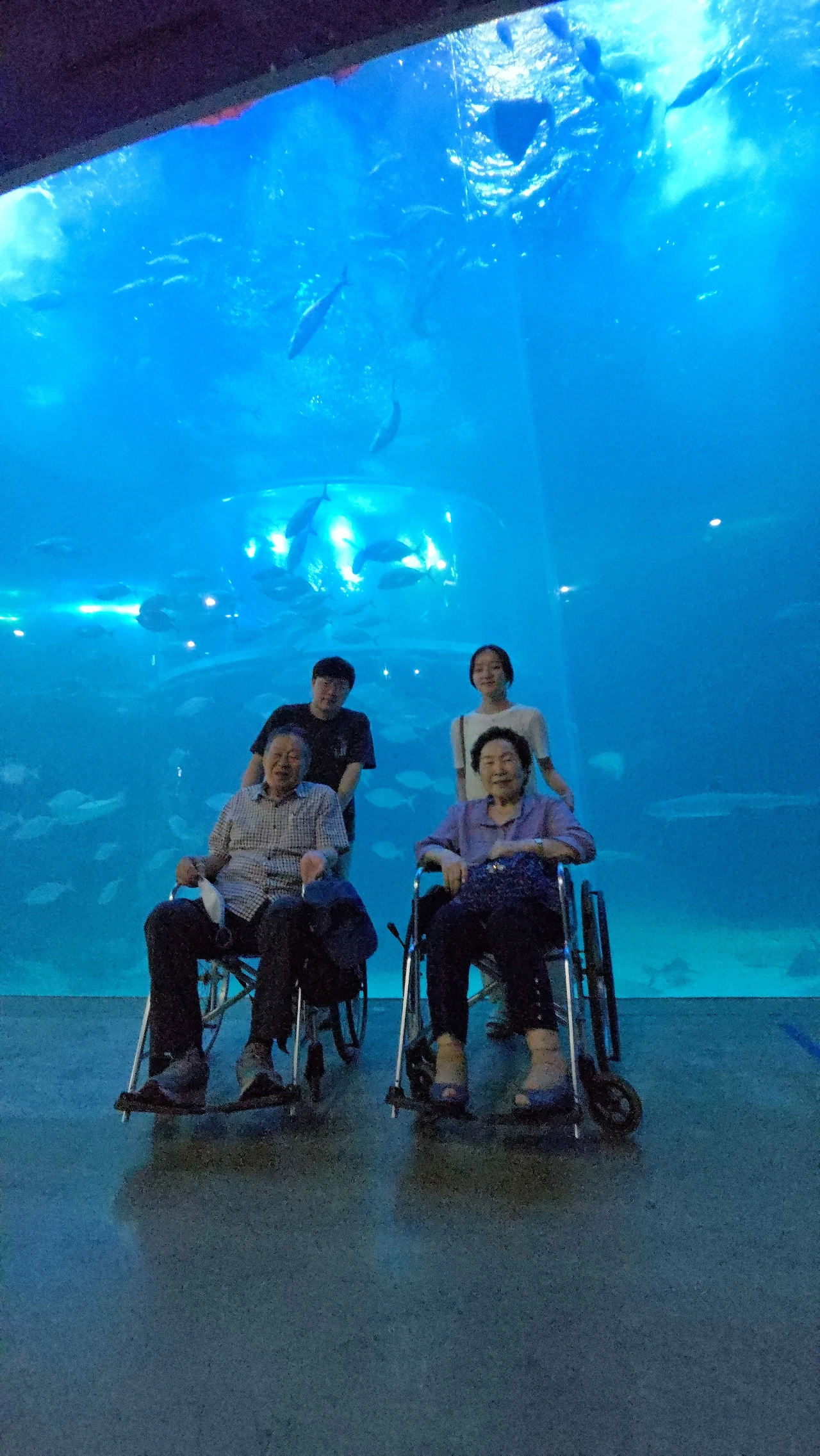 아쿠아플라넷에서는 휠체어 2대를 대여받았다. 허리와 무릎이 좋지 않으시고 보행이 불편하신 장인, 장모님은 지팡이 대신 휠체어에 앉아서 2시간 넘게 편하게 수족관을 관람하셨다.