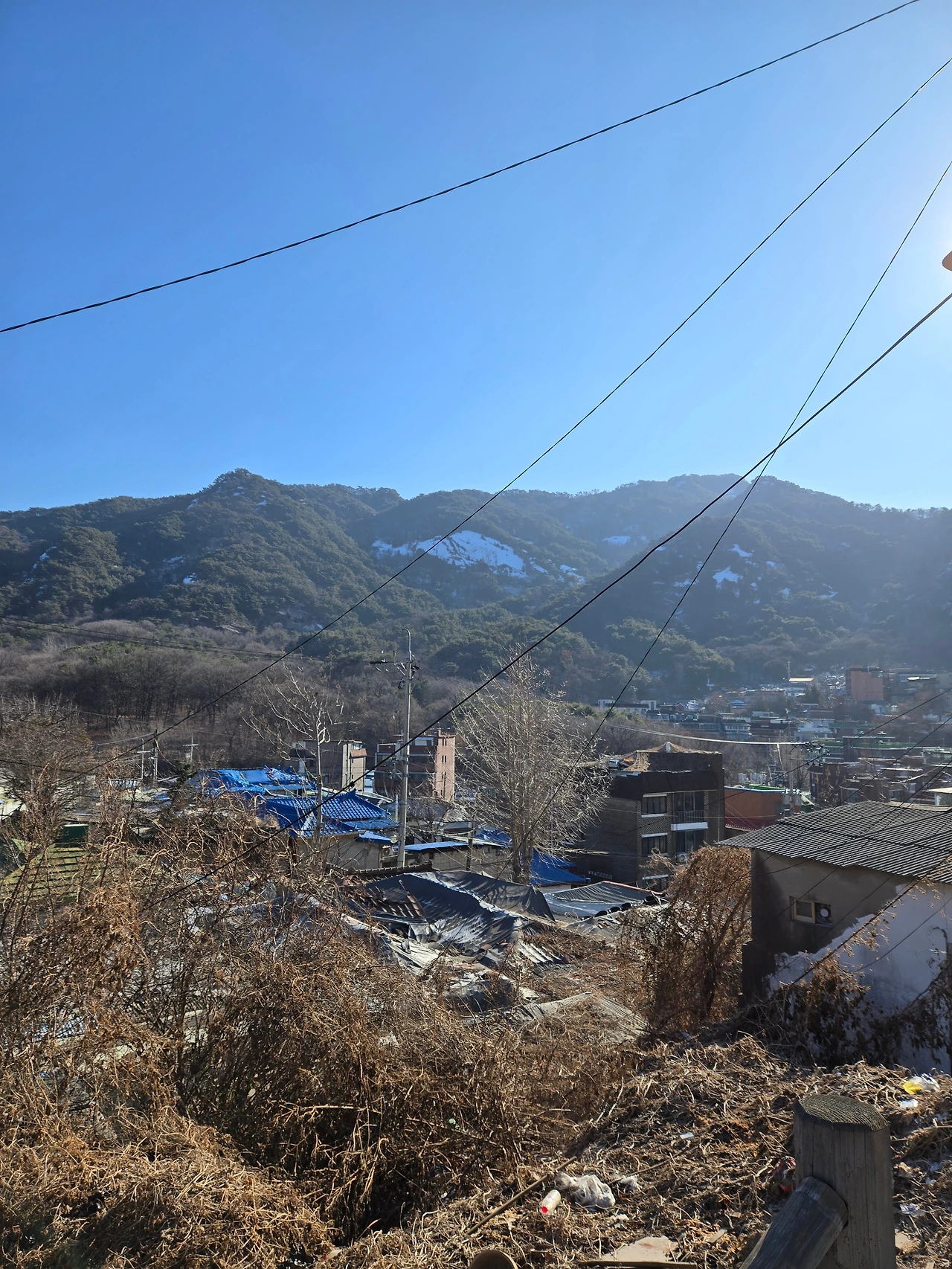 올해는 겨울 한파가 제일 매서운 1. 10. 금요일 아침에 수락산이 보이는 서울 노원구 상계