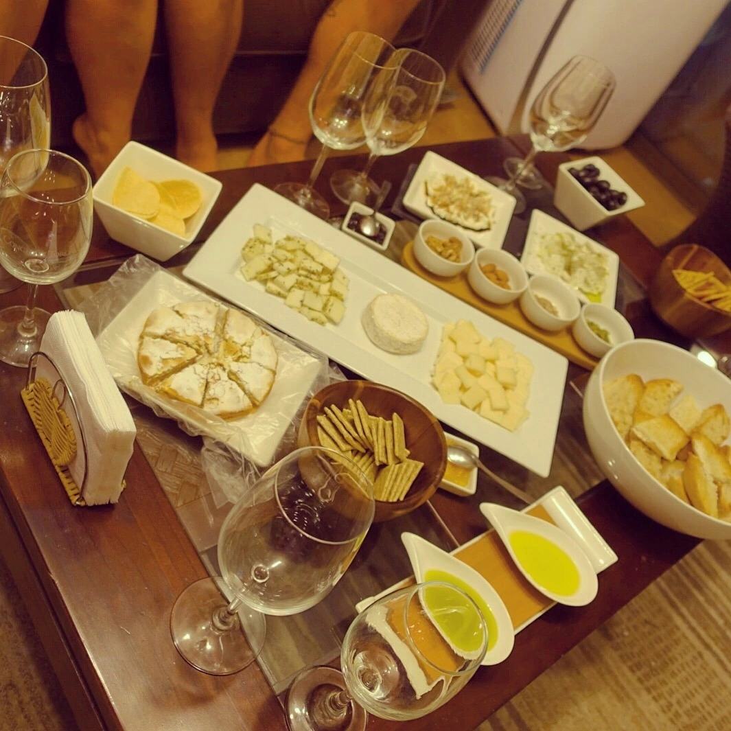 그렇게 함께 아침을 먹고 난 뒤엔 각자의 일과를 보냈다. 그리고 또 밤이면 거실 소파에 둘러앉아 함께 하루를 마무리하는 거다. 어떤 날은 와인을 마시고, 어떤 날은 피스코사워를 맛보기도 하면서. 두 종류의 와인을 먹는 날에는 각자 와인잔 두 개씩을 꺼냈다. 세 종류의 와인일 때에는 각 와인잔이 세 개씩 필요하다. 이게 판초네에서 와인을 마시는 공식이다. 한 종류의 와인은 하나의 잔에, 다른 와인은 다른 잔에. 안주로는 다양한 치즈와 살라미들을 곁들이기도 하고, 크래커와 빵에 오일을 곁들이기도 했다. 빵을 찍어먹는 이 오일은 매번 두세 종류를 내었는데 올리브오일 외에 세서미 오일을 꼭 함께했다. 우리식으로 하면 참기름에 빵을 찍어먹는 격이라 나로서는 참 색달랐다. 달콤한 케이크 같은 파이를 곁들인 날도 있었는데 이름이 또르따 꿀리까나였다. torta curicanas. 이건 판초네 부모님이 사시는 동네의 전통 파이의 이름이다. 파이라는 torta라는 말 뒤에 지명의 이름이 붙는 방식이다. 우리 집에서 이런 걸 만들었다면 또르따 반성이 되는 셈이다.