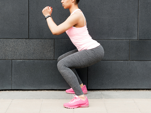 어깨너비로 발을 벌리고 서서 가슴은 곧게 펴고, 상체도 최대한 꼿꼿하게 펴는 것이 좋습니다. 그리고 팔을 머리 위로 뻗으면 준비 자세가 완료되는데요. 상체를 숙이며 팔을 아래로 내린 후, 엉덩이를 낮춰줍니다. 의자에 앉는다는 느낌으로 자연스럽게 엉덩이를 낮추면 되는데요. 머릿속에 가상의 의자를 그리면서 앉고, 허벅지가 바닥과 거의 평행을 이루도록 구부리는 것이 좋습니다. 그런 다음 팔을 다시 머리 위로 뻗으면서 일어나면 1회가 완료되며, 운동 중에는 상체가 구부러지지 않도록 주의합니다. 하루 5분씩 반복하세요.