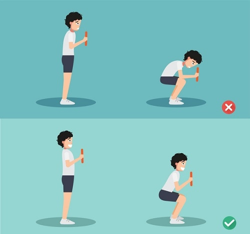 스쿼트를 할 때 등이 구부러지고 어깨가 말리는 것을 조심해야 합니다. 또한, 상체가 앞으로 지나치게 기울어져 무릎에 체중 부담이 실리는 것도 주의해야 하는데요. 어깨너비로 발을 벌리고 서서 허리는 곧게 펴고, 상체도 최대한 꼿꼿하게 펴는 것이 좋습니다. 그리고 무릎을 앞으로 구부리는 대신에 의자에 앉는다는 느낌으로 엉덩이를 낮추면 되는데요. 허벅지가 바닥과 평행한 부분까지 내려간 후, 원래 자세로 돌아옵니다.