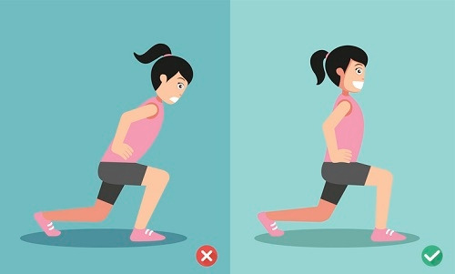 런지는 상체가 앞으로 구부러져 무릎에 지나치게 많은 체중이 실리거나 상체가 뒤로 구부러져 엉덩이를 앞으로 미는 실수를 주의해야 하는데요. 두 발을 모으고 서서 왼발에 무게 중심을 두며, 오른발을 들어 올리고 앞으로 내디뎌 런지 자세를 만듭니다. 앞쪽에 나온 무릎은 90도 각도를 이루어야 하며, 왼쪽 무릎은 바닥에서 아주 미세하게 떨어뜨립니다. 그런 다음 오른쪽 발꿈치를 밀면서 다시 원래의 자세로 돌아오면 되는데요. 다리를 바꿔가며 운동합니다.