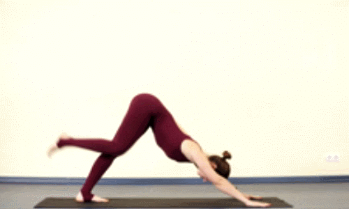 1) 코브라 상태에서 엉덩이를 들며 다운도그 자세로 전환합니다. 햄스트링과 종아리가 개방되기 시작하면, 다리를 쭉 펴면서 발꿈치를 바닥으로 낮추기 시작하세요. 머리는 어깨 사이에 편안히 두도록 하고, 30초 동안 유지합니다. 2) 왼쪽 다리를 공중으로 들어 올리며, 무릎을 접어 발끝이 전면을 향하도록 합니다. 또한, 머리를 들어 시선을 전면을 향하고, 30초 동안 버팁니다. 3) 들어 올린 왼쪽 다리를 내리면서 앞으로 최대한 끌어당깁니다. 그리고 손을 공중으로 뻗으면서 척추를 스트레칭하세요. 30초 동안 진행합니다.