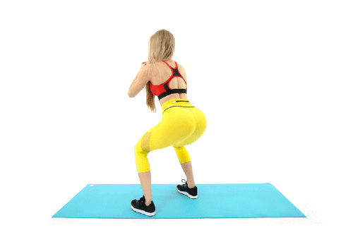 어깨너비로 발을 벌리고 서서 허리는 곧게 펴고, 상체도 최대한 꼿꼿하게 펴는 것이 좋습니다. 그리고 엉덩이를 낮춰서 허벅지가 바닥과 평행을 만든 후, 엉덩이를 살짝만 들었다가 다시 낮춰주는 동작을 진행합니다. 기본자세로 완벽하게 돌아오지 않고, 스쿼트를 최대한 반복하고 올라오는 방법인데요. 이 자세에서 중요한 것은 반동으로 스쿼트를 하는 것이 아니라 둔근과 허벅지의 힘으로 일어나야 합니다. 1분 동안 반복하세요.