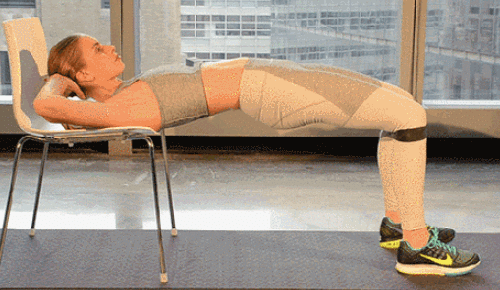 의자나 소파, 벤치 등에 어깨를 대고 누운 후, 어깨부터 무릎까지 직선 형태로 자세를 갖춥니다. 그리고 바닥에서 하는 브릿지 운동과 동일하게 엉덩이를 위아래로 움직이는 동작을 진행합니다. 엉덩이를 아래로 낮춘 후, 다시 원래 자세로 돌아오면 1회가 완료됩니다. 원래 자세로 돌아오면서 둔근을 쥐어짜야 운동 효과를 높일 수 있는데요. 1분 동안 반복합니다.