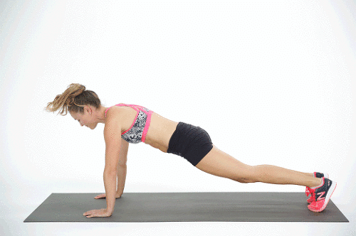 두 발을 모아서 플랭크 자세로 시작하며, 상체를 안정적으로 유지하면서 복근에 힘을 줍니다. 그리고 무게 중심을 팔에 싣고, 배에 힘을 넣어 척추 쪽으로 한껏 밀어 넣고, 다리를 똑바로 펴서 복근을 사용하여 엉덩이를 당겨줍니다. 그런 다음 점프하여 두 발을 전진시켜 몸을 ㄱ자 모양과 비슷하게 만든 후, 다시 점프하여 원래의 플랭크 자세로 돌아갑니다. 1분 동안 반복하세요.