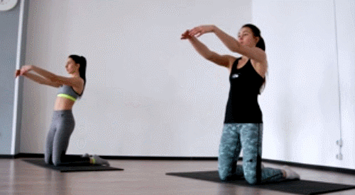 바닥에 무릎을 꿇고 엎드린 자세에서 시작합니다. 그리고 몸통을 고정하면서 오른쪽 팔과 왼쪽 다리를 곧게 뻗습니다. 그런 다음 팔과 다리를 가슴 방향으로 서로 당겨 팔꿈치와 무릎이 만나도록 하고, 다시 구부러짐 없이 펴주면 1회가 완료되는데요. 30초 반복하고, 팔과 다리의 위치를 바꿔서 반복하여 1분 동안 계속해서 진행하세요.