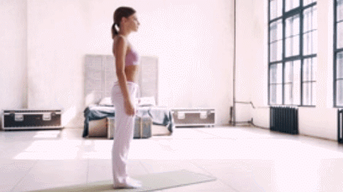 3단계 자세에서 발꿈치를 들어주면 운동 효과를 높일 수 있는데요. 신체의 밸런스를 유지하며, 시선은 바닥을 향하고, 최대한 버티세요. 그리고 원래 자세로 돌아갔다가 이러한 과정을 반복하여 진행합니다. 1분 동안 운동하세요.