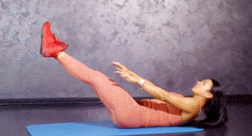 바닥에 등을 대고 누운 후, 다리를 공중으로 들어 올립니다. 그리고 팔을 앞으로 쭉 뻗으면 준비가 완료됩니다. 그런 다음 머리와 어깨를 바닥에서 떼어내면서 상체를 들어주는 동시에 왼쪽 다리 바깥쪽으로 손을 뻗어주면 되는데요. 30초 반복 후, 오른쪽 다리 바깥쪽으로 손을 뻗는 동작을 30초 반복합니다. 운동 중에는 다리가 땅에 닿지 않도록 자세를 유지하고, 복부에 힘을 주고 압박합니다.