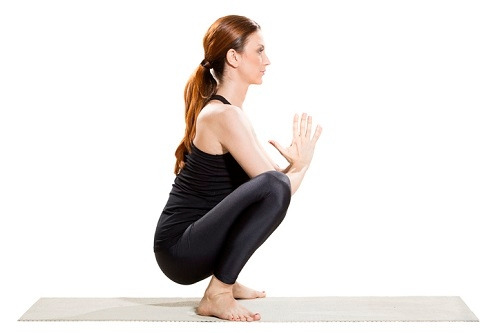 바닥에 쪼그려 앉아서 시작합니다. 발은 어깨너비보다 더 넓게 벌려주면 되는데요. 발끝이 몸의 바깥 방향을 향하도록 돌려줍니다. 그리고 복부에 힘을 주면서 상체가 구부러지지 않게 꼿꼿하게 펴는 자세를 유지해야 하는데요. 양손을 가슴 앞에 모으고, 팔꿈치를 허벅지 안쪽에 가져갑니다. 심호흡하며, 상체를 최대한 늘이고, 하체를 열어준다는 느낌으로 운동합니다.