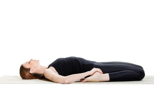 바닥에 누워서 무릎은 구부려 가슴으로 가져다 대고, 손으로 발의 바깥 가장자리 부분을 부여잡습니다. 그리고 가슴 방향으로 가볍게 당겨줍니다. 그런 다음 무릎이 최대한 겨드랑이 방향에 닿을 수 있도록 하세요. 이때 어깨나 가슴에 무리하게 긴장을 주지 않도록 하고, 신체의 나머지 부분에는 힘을 주지 않습니다. 이 자세로 호흡하며, 1분간 운동합니다.