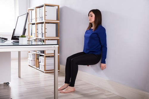 근력이 부족한 사람이 스쿼트 자세나 체어 자세를 대체할 수 있는 운동인데요. 벽에 기대서 앉기 때문에 바른 자세를 유지할 수 있으며, 부상의 위험도 줄일 수 있습니다. 허벅지가 바닥과 평행이 되도록 엉덩이를 낮추고, 등은 벽에 기댑니다. 처음에는 10초를 목표로 버티고, 점차 버티는 시간을 늘립니다. 1분 동안 반복하세요.
