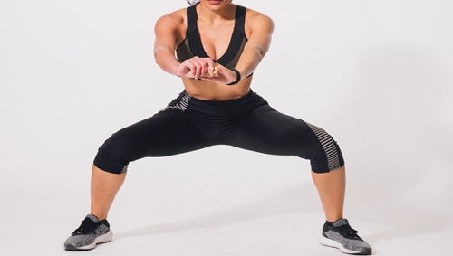다리를 최대한 넓게 벌리는 와이드 스쿼트 운동은 기본 동작에 비해 둔근을 활성화시키고, 다리 안쪽 근육을 더욱 강화할 수 있는데요. 군살을 제거하며, 탄탄한 라인을 만들 수 있습니다. 또한, 하체 근육을 자극하며, 균형감각 발달에 도움이 됩니다. 다리를 벌리고 상체를 편 다음, 앉았다가 일어나는 동작을 1분간 진행하세요.