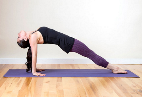 바닥에 엉덩이를 대고 앉은 후, 다리를 폅니다. 그리고 손과 발로 몸을 지탱하며, 엉덩이를 바닥에서 천천히 들어주세요. 몸이 사선을 이루도록 복근과 둔근에 힘을 주며 자세를 만듭니다. 목을 뒤로 젖히면, 스트레칭 효과를 높일 수 있는데요. 1분간 진행하세요.