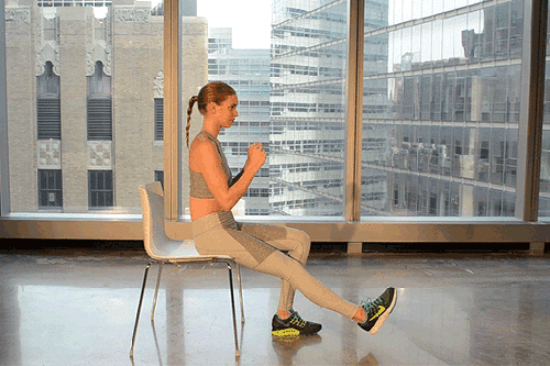 의자 앞에 서서 오른쪽 다리를 공중으로 들어줍니다. 그리고 하체가 자극될 수 있도록 천천히 의자에 앉았다가 일어나면 되는데요. 30초 동안 반복 후, 왼쪽 다리를 공중으로 들고, 싱글 레그 스쿼트 동작을 반복합니다. 운동 중에는 의자가 움직이지 않도록 벽면에 고정하는 것이 좋습니다.