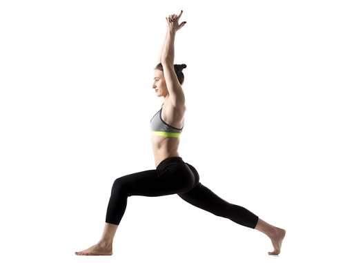 바닥에 서서 손을 머리 위로 올리고, 왼발을 앞으로 내딛으며 엉덩이를 낮춥니다. 왼쪽 다리의 무릎이 90도 각도로 되도록 만들고, 오른쪽 다리는 구부러지지 않도록 펴줍니다. 상체를 꼿꼿하게 유지하고 30초 동안 진행한 후, 다리를 바꿔서 30초 진행하세요.