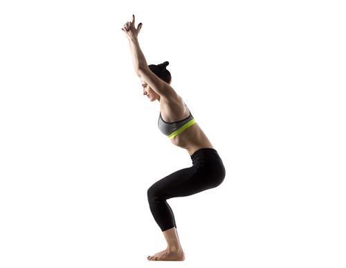 다리를 모으고 똑바로 선 상태에서 시작하며, 손을 머리 위로 올려서 맞잡습니다. 그리고 무릎을 구부리고 엉덩이를 낮춰서 자세를 만듭니다. 1분 동안 최대한 버티세요. 처음에는 20초를 목표로 진행하고, 점차 버티는 시간을 늘립니다.