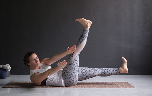 바닥에 엉덩이와 발바닥을 대고 앉아서 진행합니다. 상체는 균형이 무너지지 않을 정도로 서서히 젖히면서 복부가 당길 수 있도록 만듭니다. 그리고 팔을 공중으로 뻗어줍니다. 자세를 유지하며 최대한 버티세요. 그런 다음 원래 자세로 돌아오고, 1분 동안 진행합니다.