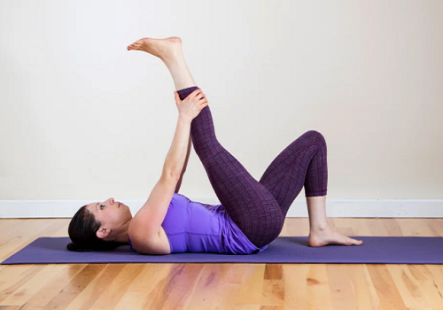 2. 누워서 다리 당기는 자세