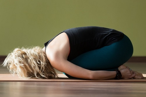 바닥에 무릎을 꿇고 앉으세요. 그리고 상체를 허벅지 위에 올린다는 느낌으로 숙여줍니다. 손은 몸 옆에 두거나 발을 잡아주세요. 호흡을 하면서 상체와 하체의 간격을 점점 좁히세요. 1분 동안 진행합니다.