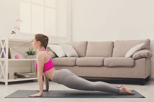 코브라 자세는 척추를 풀어주면서 단련하고, 하체의 순환을 개선하는 효과가 있는데요. 매트에 손바닥을 대고 엎드리고, 허리를 바닥으로 내려서 자세를 만듭니다. 시선은 정면을 바라보고, 1분간 호흡하며 운동하세요.