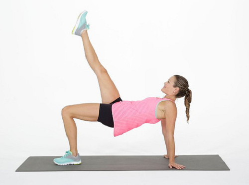 매트에 엉덩이를 대고 앉아서 시작하세요. 손바닥과 발바닥을 지면에 붙이고, 몸을 공중으로 띄우면 테이블탑 자세가 완성됩니다. 그리고 오른쪽 다리를 뻗어서 킥 동작을 추가하면 되는데요. 3초 이상 버틴 후, 원래 자세로 돌아오고, 반대쪽 다리로 동일하게 반복합니다. 1분간 교차하세요.