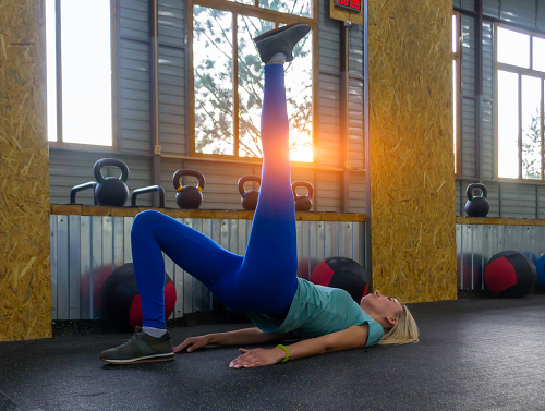 브릿지 자세에서 다리를 바닥과 90도 각도로 공중으로 드는 킥 동작을 추가할 수 있습니다. 먼저 등을 대고 눕고, 엉덩이를 들어서 브릿지 자세를 만듭니다. 그리고 왼쪽 다리를 공중으로 뻗어주세요. 그런 다음 자세를 유지하며 3~5초 버틴 후, 원래 자세로 돌아와서 오른쪽 다리를 드는 동작으로 연결합니다. 1분 동안 다리를 바꿔서 킥 동작을 진행합니다.