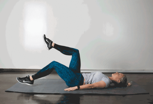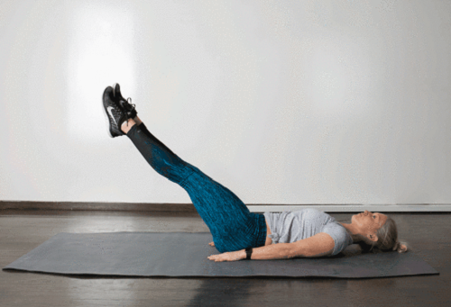 매트에 누운 상태에서 다리를 띄우세요. 천천히 다리를 바닥과 90도 각도까지 들어서 올렸다가 내려줍니다. 운동 중에는 바닥에 다리가 닿지 않도록 주의하세요. 1분 동안 운동하며, 상체가 떨어지지 않도록 복부에 힘을 주며 자세를 유지합니다.