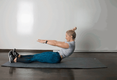 매트에 등을 대고 누워서 손을 머리 위로 뻗어줍니다. 그리고 척추 마디마디를 움직인다는 느낌으로 천천히 상체를 일으켜주세요. 그런 다음 역순으로 바닥에 몸을 눕힙니다. 1분 동안 상체를 반복적으로 움직이며 복부를 자극합니다.