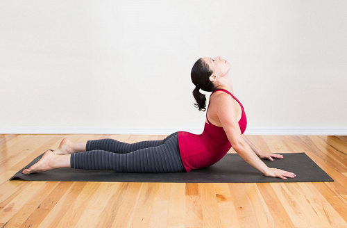 척추의 유연성을 기르는 코브라 자세는 먼저 배를 대고 매트에 엎드려서 시작합니다. 팔은 앞으로 뻗고, 팔에 힘을 주면서 상체를 들어주세요. 골반을 포함한 하체를 바닥에 붙인 상태로 상체를 개방시키세요. 목을 뒤로 젖히면서 스트레칭을 강화합니다. 10회 이상 호흡하고, 돌아옵니다. 1분간 반복하세요.