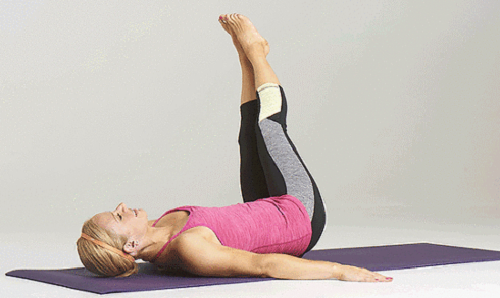 매트에 누워서 상체를 고정하고, 다리를 90도 각도로 올리세요. 그리고 다리를 왼쪽으로 내렸다가 원위치하고, 오른쪽으로 내렸다가 원위치하는 동작을 반복합니다. 1분 동안 다리를 좌우로 움직이면서 운동하세요. 허리가 뜨지 않도록 복부에 힘을 줍니다.