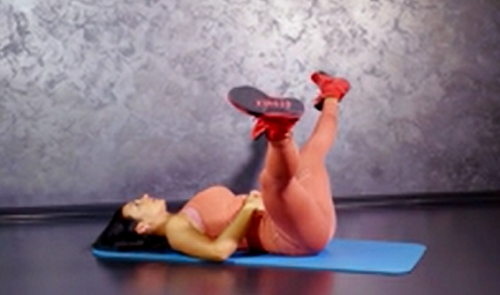 매트에 누운 상태로 복부에 힘을 주고, 다리를 공중으로 들어줍니다. 그리고 자전거를 타는 것처럼 다리를 왕복으로 교차하면 되는데요. 무릎을 구부린 상태로 위아래로 움직입니다. 1분 동안 다리를 빠르게 교차하세요.