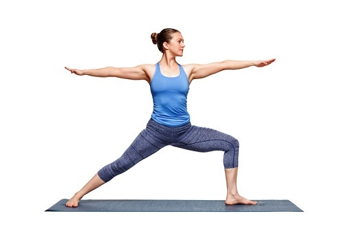 정면을 보고 선 상태에서 왼쪽 다리를 왼쪽으로 틀면서 다리를 내딛고, 무릎을 구부립니다. 그리고 양팔을 옆으로 벌리고, 시선을 왼쪽으로 향하도록 합니다. 이때 어깨 높이를 동일하게 맞추고, 상체가 구부러지지 않도록 합니다. 30초 운동 후, 반대 방향으로 30초 진행하세요.