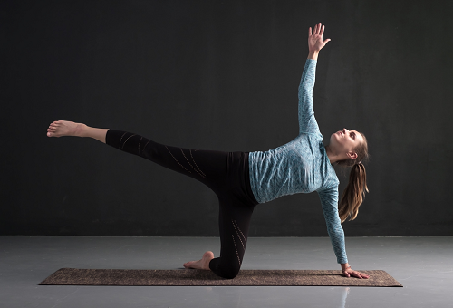 매트에 왼손과 왼쪽 무릎을 대고 옆으로 누워서 시작하세요. 그리고 오른손을 공중으로 뻗고, 오른발을 들어줍니다. 시선은 오른손 끝을 향하고, 자세를 유지하며 버티거나 다리를 내렸다가 드는 동작을 반복하세요. 30초 반복 후, 반대편 방향으로 30초 진행하세요.